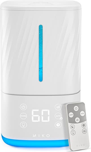 - The Miko Myst Ultrasonic Humidifier offers both cool and warm mist options for year-round comfort in spaces up to 540 sq. ft. Its 4.5L top-fill tank provides up to 40 hours of continuous use, ensuring consistent humidity levels.