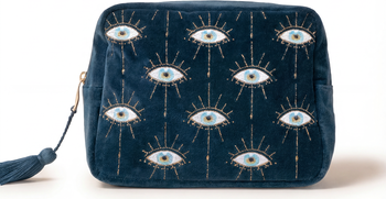 Inspired by ancient symbols of protection, this dreamy design features a beautifully-illustrated eye embroidered with threads of gold and silver. Upgrade your travels with this wash bag - featuring a tassel zip, inner pockets and waterproof lining to protect from suitcase spills.