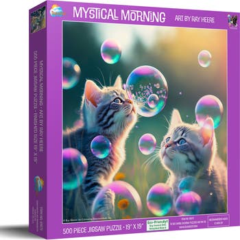 Embark on a whimsical journey with the Mystical Morning 500-piece jigsaw puzzle by SunsOut Puzzles. This enchanting artwork, designed by renowned artist Ray Heere, promises hours of entertainment and relaxation for adults with its vibrant colors and intricate details. Known for their exceptional quality, SunsOut engages you in superior craftsmanship, each piece interlocking seamlessly on a durable, high-quality recycled cardboard printed with eco-friendly soy-based inks. The vivid depiction of kittens in a dreamlike setting adds a touch of magic to any space and stands as a testament to your puzzle-solving skills and appreciation of art. As a woman-owned small business proud of its made in the USA product, SunsOut ensures customer satisfaction with a worry-free guarantee while demonstrating an environmental responsibility. Above all, the Mystical Morning jigsaw puzzle is designed for adults who appreciate art and love tackling challenges, making it a captivating puzzle experience unlike any other. Dive into the tranquility and fulfillment it brings and let your imagination soar.