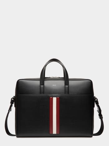 The Mythos briefcase has been given a new interpretation, rendered iconic with Bally signifiers. A Ribbon in leather has been inlaid at the front, featuring leatherworking and craftsmanship. The main compartment has a dedicated sleeve for a laptop and tablet, plus zip and open pockets. Functionality is ensured by the detachable and adjustable shoulder strap and the suitcase sleeve on the back.