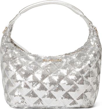 Lustrous sequins and polished logo hardware add eye-catching glamour to an evening-ready bag fitted with an optional crossbody strap for hands-free carry.