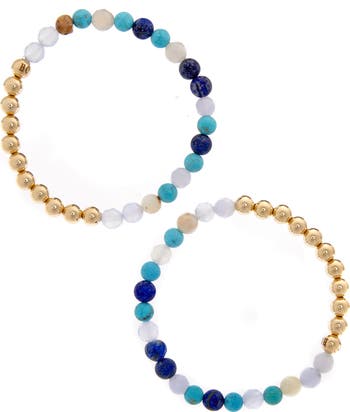 Activate a sense of inner strength with this pair of stretch bracelets showcasing a curated mix of crystals, polished stones and 14k-gold-filled beads.