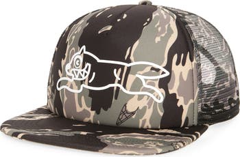 A signature running dog stands out on the front of this breathable cotton-twill trucker hat made with a bold camouflage print.
