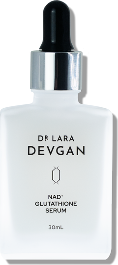 "This powerful serum pairs NAD⁺ with glutathione to supercharge skin at the cellular level. It revitalizes dull, fatigued complexions, restoring a firm, radiant, and youthful appearance. "