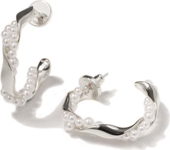 Nadia Molten Shell Pearl Twisted Hoop Earrings