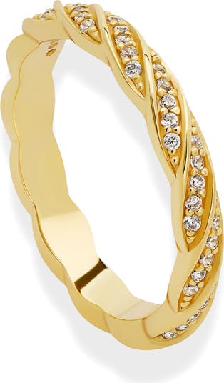 Pavé cubic zirconia enhances the exquisite shine and captures the vintage-inspired charm of this twisted band crafted from 14-karat-gold vermeil.