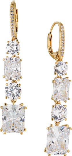 A medley of cubic zirconia stones adds just-right sparkle as they tumble the length of these versatile day-to-evening earrings.