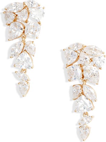 These triangular earrings get their special-occasion sparkle from a collection of cubic zirconia in a variety of cuts.