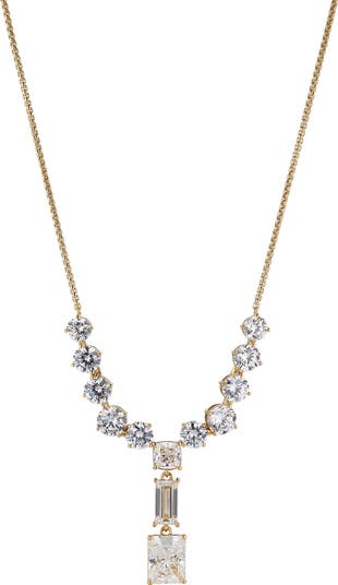 Anchor your stack in serious shine with this dainty Y-necklace fronted by clusters of cubic zirconia.