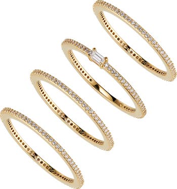 Add a dash of glamour to your stack with this dainty set of stacking rings awash in glittering cubic zirconia.