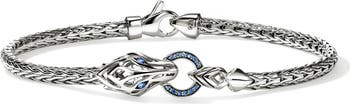 Balinese for “dragon,” naga is a legendary symbol of love, protection and prosperity on this hand-woven chain bracelet sparkling with fiery blue sapphires.