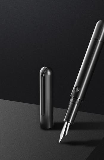 The Nautilus Ti Black Fountain Pen is crafted from anodized black titanium, featuring a minimalist design with flush cap and portholes. It offers an improved writing experience with its stainless steel or 14K gold nib and ebonite feed.