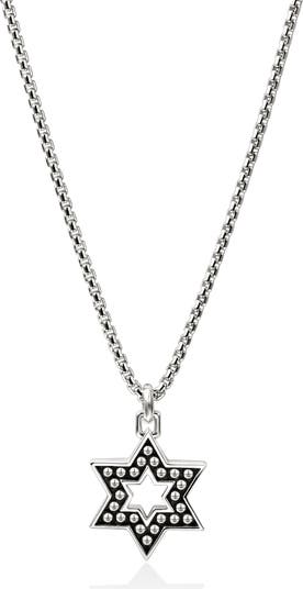 A Star of David pendant set with studded accents brings a modern edge to this sterling silver necklace, balancing strong design with enduring symbolism.