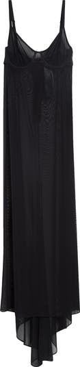 Known for his cheeky sartorial send-ups, Demna gives underpinnings top billing in his final Balenciaga collection, introducing this floor-pooling tulle dress with sultry sheerness and underwire detailing lifted from lingerie styles.