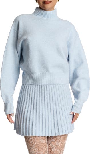 Soft ribbing anchors this supersoft turtleneck sweater knit with dropped shoulders for a slightly slouchy fit.