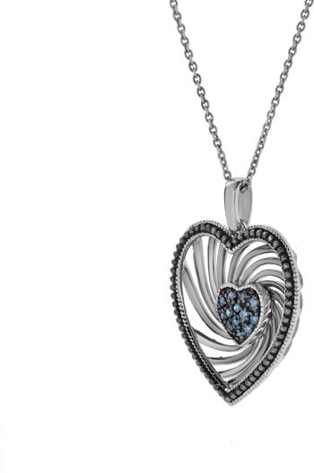Romantic with a modern twist the Nalina pendant features a heart shaped design with a dynamic swirl pattern. Crafted in polished 925 sterling silver the flowing lines create depth and movement drawing attention to the center. A cluster of green treated natural diamonds adds a vibrant pop of color beautifully contrasting with the cool toned metal. Lightweight and eye catching this piece is perfect for both everyday wear and special occasions. Made in U.S.A. Chain is not included.