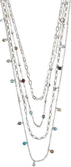 Achieve a trendy layered look effortlessly! The Nanda Layered Beaded Necklace features four different styles of dainty chains in varying lengths, two with small onyx beads. The chains create a lovely cascading effect, and the necklace is adjustable for preference. Intricately handcrafted in India by our fair trade partner Tara Projects, which helps to transform artisans' lives and communities with new opportunities to earn sustainable income.