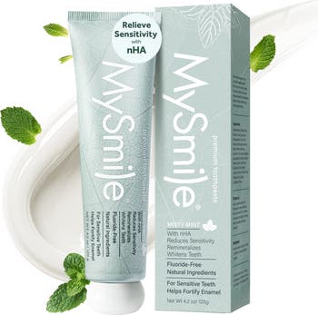 MySmile Nano-Hydroxyapatite Toothpaste strengthens enamel, eases sensitivity, fluoride-free, mint fresh, gentle, low-waste tube for confident smiles.