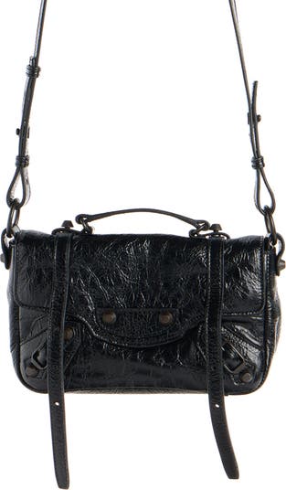 Balenciaga relaunches its iconic Y2K bag with this updated flap style that's crafted from crinkled lambskin leather and detailed with signature hardware.