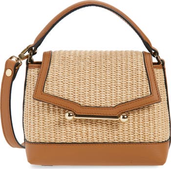 Strathberry's signature bar hardware authenticates this fan-favorite bag that draws inspiration from the work of Scottish mosaic artist Eduardo Paolozzi. It's handcrafted in Spain in a scaled-down silhouette from a mix of woven raffia and tonal calfskin leather.