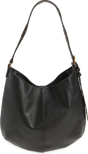 Signature studs trace the adjustable shoulder strap of this grained-leather hobo bag featuring a slouchy topline and spacious interior perfect for your on-the-go essentials.