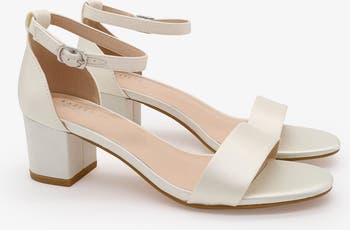 Classic low block heel wedding sandals with removable ankle strap.