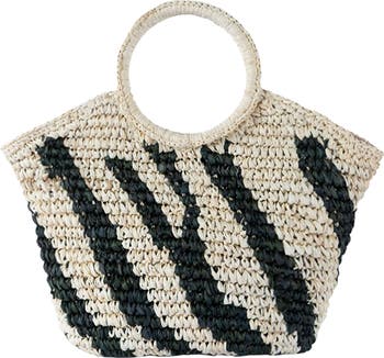 Make a refined statement every day with this elegant tote that's intricately handwoven from raffia straw in a striking stripe pattern.