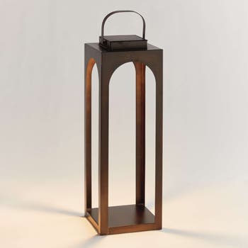 Illuminate the evening with the energy of the sun. The Brooks Solar LED Lantern is a classic look with traditional lines. It is designed with a solar panel built in to the top that casts a warm LED light below. Add some greenery at the base for a fully styled look. Just perfect for covered porch, entryway or lanai.