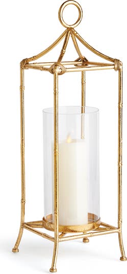 A contemporary take on chinoiserie style, this lantern is smooth and refined, it is scaled to work well in the smaller space. The antique gold finish and sleek glass cylinder add a sense of light and reflection.
