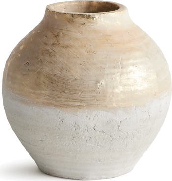Hand-dipped in a radiant champagne glaze and with a rough, uneven texture, this teardrop vase is a dynamic accessory. Tuck into a book shelf or on a home office desk for a rich, artisan look.