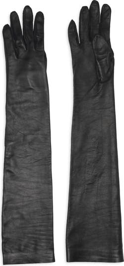 Elegant opera-length gloves are meticulously cut from beautifully soft, supple sheepskin leather.