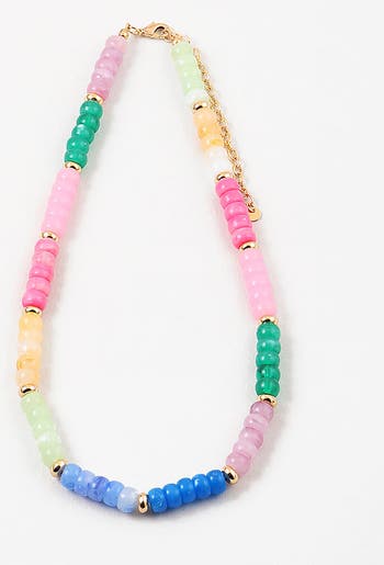 This is such a cool color combo! We love the mix of resin colorful beads separated by gold spacer beads — a great pop of color to wear everyday, on its own, or layer with other favorites!