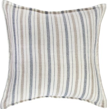 Take a trip to the seashore without going further than your cozy bedroom with this pillow made from hearty hand-loomed linen in a relaxing palette of salt-faded stripes.