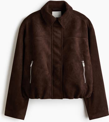 Jacket in woven fabric with a soft, napped finish. Features a collar, zip down the front and a wind flap with concealed press-studs. Yoke at the front and back, dropped shoulders and zipped side pockets. Zip at the back of the cuffs, a pleat at the back and internal elastication at the hem for a puffy silhouette. Lined.