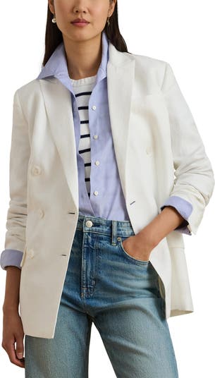 Cut from a lightweight linen blend, this work-to-play blazer is made in a classic double-breasted silhouette.