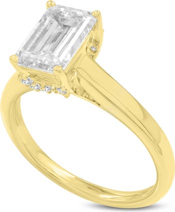Narine 14K Yellow Gold Emerald Cut Lab Grown Diamond Hidden Halo Engagement Ring - 2.15 Ct