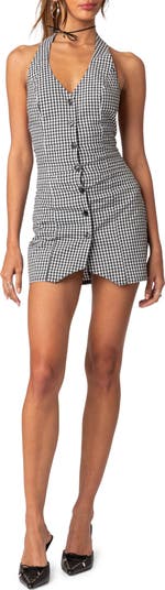 Narissa Gingham Halter Minidress