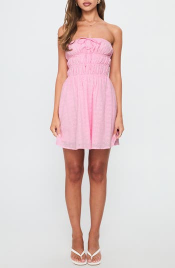 Princess Polly Narlia Strapless Cotton Minidress, Main, color, Pink