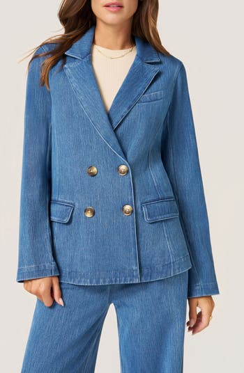 Look put together while still being your laid-back self in this double-breasted blazer made from stretch-added denim that's rendered in a versatile medium wash.