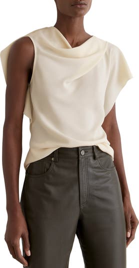 Flowing and asymmetric, this drapey top is versatile and intriguing.