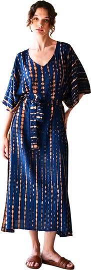 Stand out with this head-turning V-neck sweeping silhouette, this kaftan dress calls to mind dreamy days spent at home or going to a yoga class.
