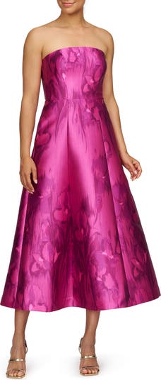 A vivid pattern elevates this sleek strapless midi punctuated with a perfectly flared skirt for a picture-perfect look from every angle.