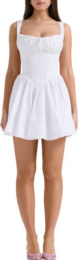 Feel your most alluring in this corseted cotton-blend minidress with a fitted, pintuck-pleated waist that creates the cinched look you love.