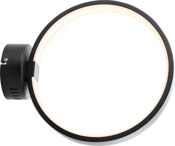 Uniting functionality and a unique contemporary design, this wall sconce is a versatile addition to a modern space. Featuring an integrated LED light, the piece is both sleek and energy-efficient. Its round shape creates a stunning halo-effect when lit.