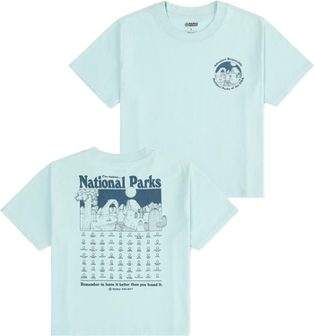 This relaxed-fit, boxy tee features a stylish checklist of all U.S. national parks. Made for comfort and durability, it's perfect for outdoor enthusiasts. Join our mission to Leave It Better—supporting and preserving our national parks. Wear it with pride while helping protect these natural treasures for future generations.