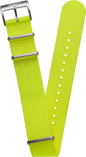 An authentic NATO band features old-fashioned military webbing that's designed to fit any UNIMATIC-range watch model.