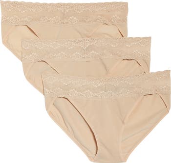 The smooth, flat lace waistband and comfy elastic legs of these soft, lightweight briefs minimize lines underneath clothes.