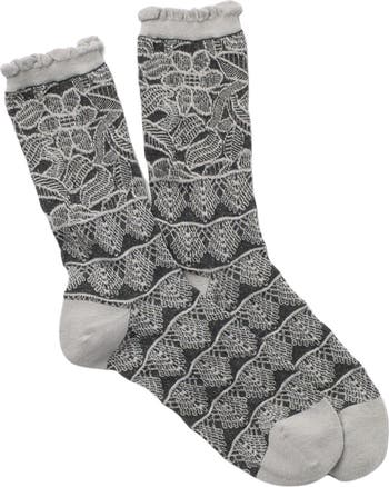 A subtle printed knit gives elegance to classic crew socks knit from soft stretch yarns. Fit: 9-11 fits shoe sizes 6-10.5