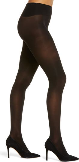 Seamless construction and a wide, comfort waistband give these essential black tights a smooth fit with no telltale lines to show under clothes.