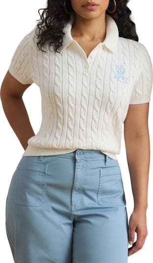 Classic with a textural twist, this cable-knit polo sweater is finished with an embroidered monogram at the chest for a signature touch. Ribbed trim at the cuffs and hem adds structure, making it an easy layer with timeless appeal.